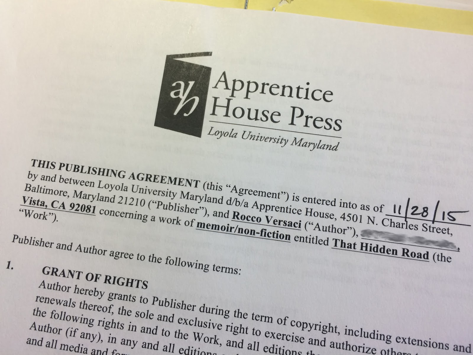 So, the news. I received word just before Thanksgiving that my memoir, That Hidden Road, was accepted for publication by Apprentice House Press, and the fact of all this is still sinking in. AH is a small press that's affiliated with Loyola University in Maryland, and it's a great fit for two main reasons.