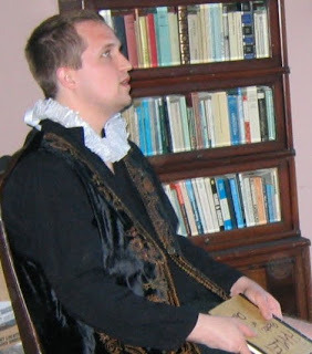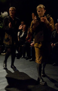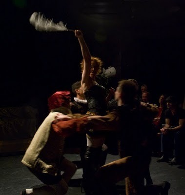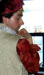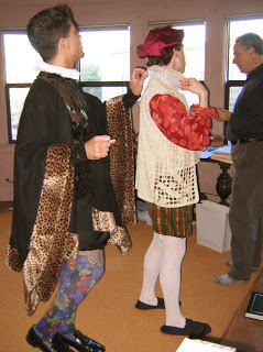 ct play, with actors, wild costumes (Oh so many handsewn ruffs! Talk about the pricking of my thumbs!) props, and culminating in a bawdy dance routine set to sonnets 144 ("Two loves I have of comfort and despair...") and 129 ("The expense of spirit in a waste of shame/Is lust...").