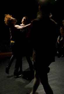 The house was packed (hardly a feat at the tiny Boxcar Theatre, which only seats about 50) and they went wild at the finale as Donald sang while I stripped down to thigh-high boots, fishnets, and a leather bustier and tangoed with each of the "Ruff Trade Boys"(actors Michael Vega, Adam Simpson, Brian Martin, and Aaron Tworek), who ended by lifting me up into the air, showgirl-style.