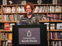 I'm back from Seattle, where I had a wonderful reading at the University Book Store (thanks to Anna and the helpful staff there). About 30 people turned up to see me and my valiant harper, Molly, including a few old high school and college friends I hadn't seen in years. In that spirit, I thought it fitting to close the reading with an experimental piece I'd first had the idea for while sitting in English class in high school, flipping through the back of the Norton Anthology of Poetry. Called "Index of First Lines," it is exactly that--a poem about poetry, composed entirely of initial lines of "canon" poems--in alphabetical order. Ironically, even though I didn't actually "write" a word of it myself, I think it's one of my most personal pieces, even referring to my own actual birthday in one verse:Pray thee, take care, that tak'st my book in hand,Redoubted knights, and honorable Dames,Remember me when I am gone away,September twenty-second, Sir: todayShe sang beyond the genius of the sea.The poem was was published in Winter 2005 issue of the Notre Dame Review, so I'm not sure about the copyright restrictions, or I'd put the entire thing up on my website. (And yes, I am aware of the irony of fretting about copyright over a poem entirely pilfered from other sources!)The only trouble with the University Book Store was that their relatively early closing time of 8:00 meant that the Q&A session after the reading had to be cut short. Which was