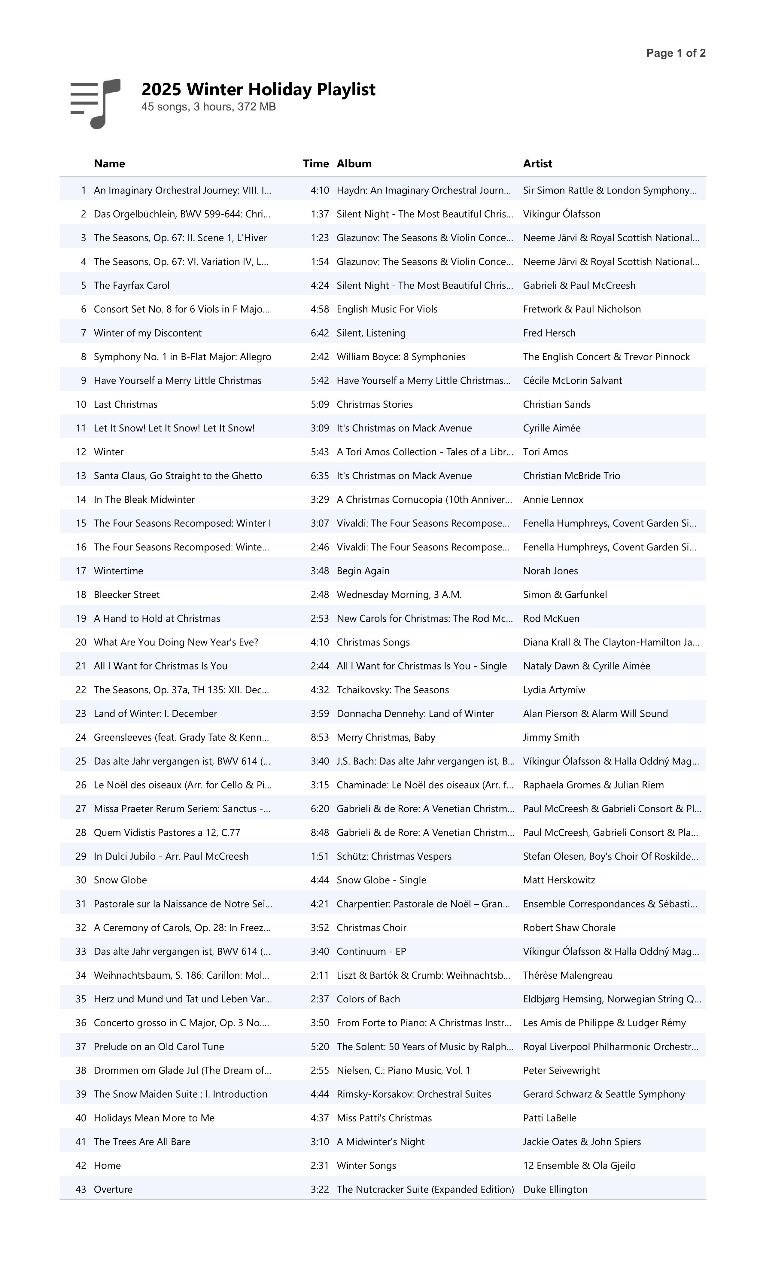 This year, my list is perhaps a bit somber and introspective. In fact, it’s not until William Boyce’s “New Year’s Ode” (Symphony No. 1), all the way at Track 8, that things get lived up a bit, and then that doesn’t last long—although I think there’s quite a bit of variety of mood without anything overtly celebratory.