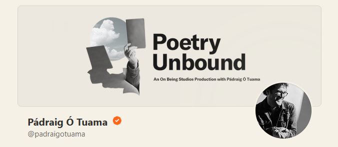 Having happened on these two posts, I was now curious about how common this theme might be, so with a few clicks and a bit of scrolling, I meandered over to another of my favorites, Pádraig Ó Tuama, who hosts the Poetry Unbound podcast. On Pádraig’s weekly podcast, which has been called “an oasis of beauty,” he reads a poem, appreciatively and insightfully analyses it, then re-reads it.