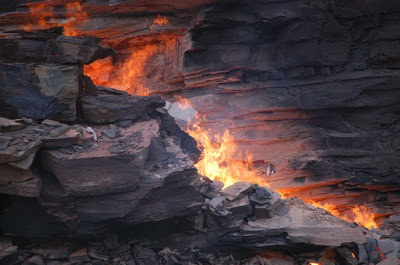 Photo from Chatanooga Times Free PressI'm working on a story about a town like Centralia, Pennsylvania where an underground coal fire has been burning for decades. The tale of two star crossed teen lovers from different sides of a nearly abandoned village. He is the son of a moonshiner family and she is the daughter of a leader of a religious cult who believe they are guarding the gates of hell. As the flames from the coal fire burn under the ground the flames of their passion burn above.