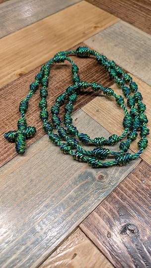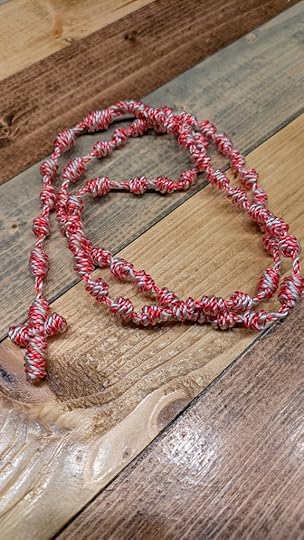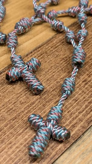 A handcrafted cord-knot rosary! These beautiful, durable, knotted rosaries are sure to make any momma smile. Consider a matching chaplet, keychain, or bracelet to go with it.