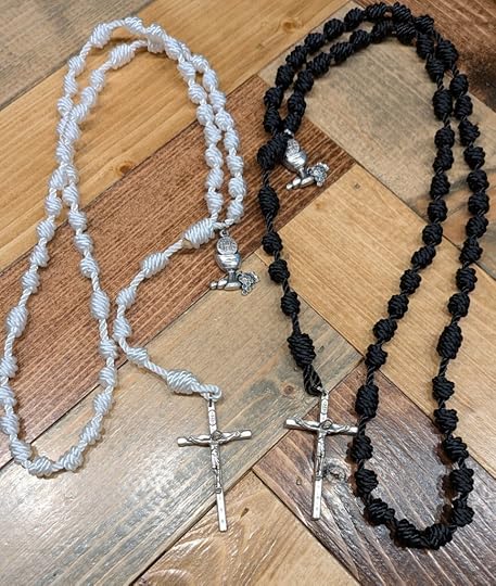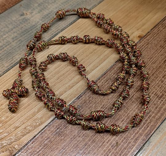 As a gift to my readers, I’m giving away one free handcrafted cord-knot rosary to each person. Choose from the 50 available colors, add it to your cart, use the code FreeRosary (not too creative there) and you’ll get one of my famous rosaries for free. You’ll only pay for shipping ($4.90)…(details continued below this gallery)…