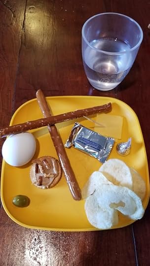 This is something that our children look forward to every year. It is a reading of the Passion narrative (abbreviated) and each food item has a symbolic reading associated with the reading. For example, Peter’s denial and the cock crowing – hard boiled egg, Judas’ 30 pieces of silver – Peppermint Patty, etc.