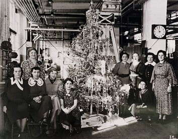 Star-Ledger archive photo; Employees of Westinghouse in Newark posed for a photo during their Christmas party in 1936. Katheryn Bethea, who at sixty-years-old finally completed the college degree she had started back in the 1950s, ultimately retired as a professor of English literature. Like so many of the Krueger-Scott narrators, she often had a rough hill to climb just to get some work to pay the bills. Mrs. Bethea recalls in her interview one Christmas season, in 1942, when she sought to supplement her income by working at the famous Bamberger’s department store. She did get work, but was hired as a “floor girl,” carrying up clothing from the basement to the various departments. This was one of the more low-paying jobs at the store. Now, because of her diligence as an employee, Bethea was actually asked to stay on after the holiday season. She agreed to do so, but only if she could work as a salesclerk instead of carting around stock all day. She said: