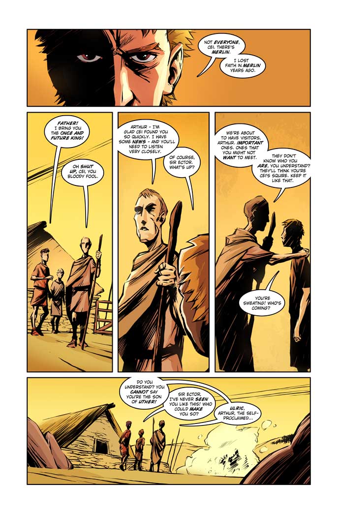 4) Gawain pulls his sword out of the Saxon's back as he speaks to Guinevere.