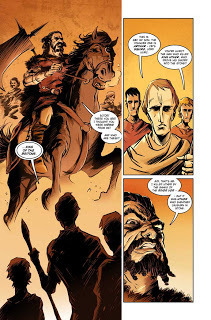 2) She batters away a sword as a Saxon runs up behind her, unseen, axe raised high to kill her!
