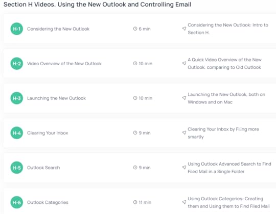 Well, I am pleased to announce that those six videos are now complete and posted to the video course delivery page. They are ready for all paid video course owners to watch them. Video H-1 is also available for non-paid readers. That video gives a high-level overview of the new Outlook and of the other videos in that section.