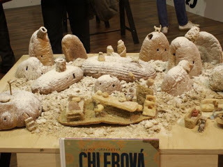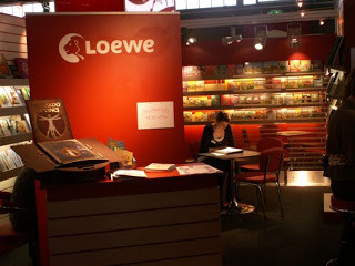 Die Gänge auf der Bologneser Buchmesse. Man kann den Boden sehen,  in Leipzig oder Frankfurt ein Ding der Unmöglichkeit. Die ideale Buchmesse für Klaustrophobiker. Ruhe vor dem Sturm (dem Ansturm der Illustratoren) bei Loewe. An der abgewandten Seite der Säule hängt etwas, worüber ich noch nicht reden darf. Die Kunst ist ein hartes Brot. Besonders in Tschechien.