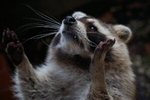 You turn away from him in time to see the animal shiver. You wipe your nose on your sleeve. Just then, the raccoon sits up and huffs, indignation written all over his drunken sailor face. He chatters and makes his way into the waiting arms of a skinny brown-haired girl who looks no more than ten.