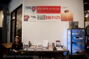 Following the party, we concentrated on getting our 5th issue out. Assisting us this time around was Ronda Rutherford, who’s joined The Rag team in an editorial intern capacity a few months ago. Born and raised near Seattle, Ronda has spent the past many years uprooted from her home, teaching English in Japan and in rural France, earning a Masters in German Literature at UCLA, and now trying her hand at editing and marketing in Manhattan. Ronda helped with the editing of Issue 5 and is involved in the reading and selection process for this summer’s upcoming release.