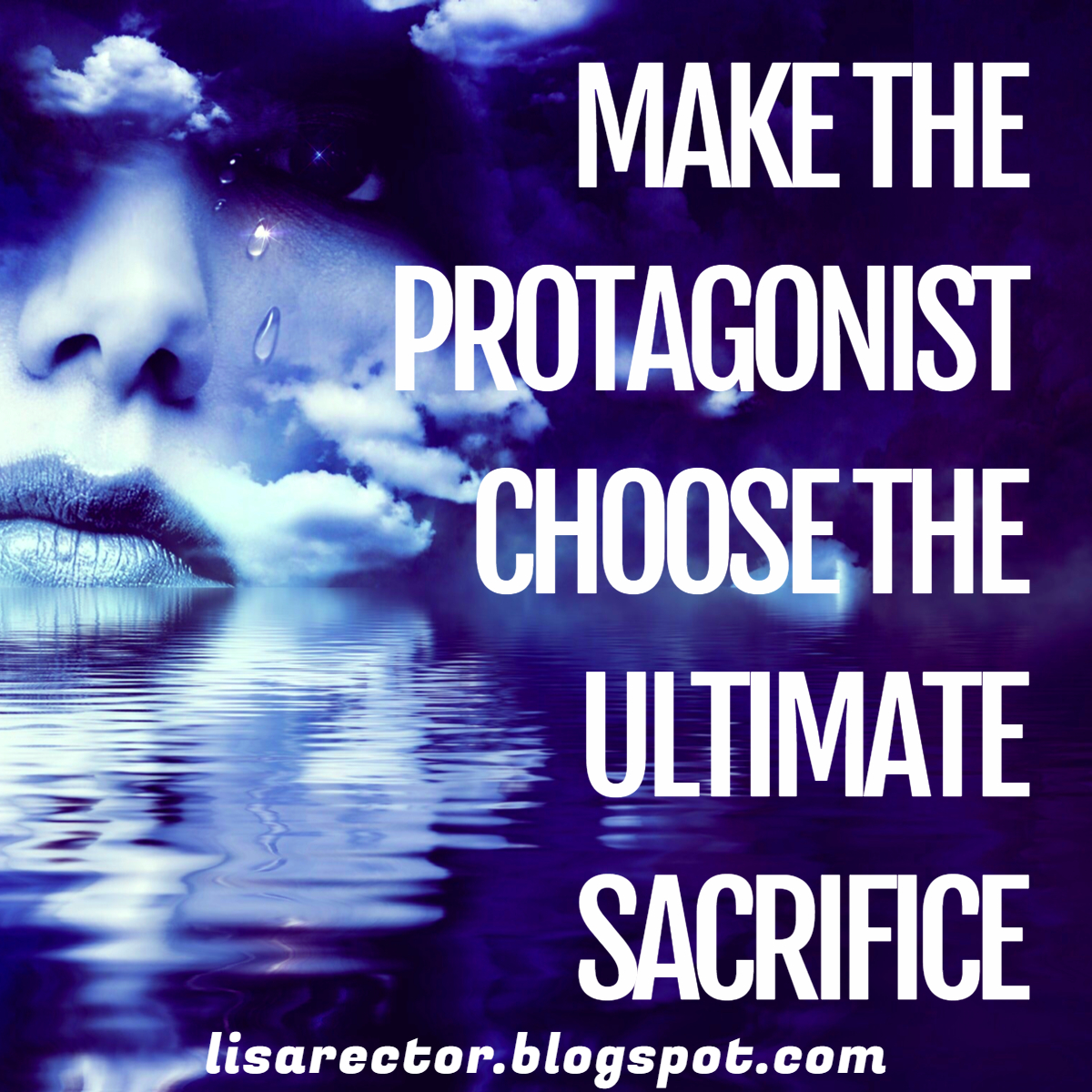 Whatever the sacrifice, make the choice agonizing. Make the stakes high. Make repercussions follow. The choice has to be so tortured and life changing that the reader will feel it too, especially if the setup in the beginning of the novel is done right and the character is someone the reader is invested in.