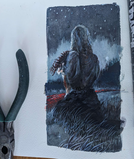 I have been persuaded to take up the stories again. So far I have completed four and am half way through the fifth. The stories have grown in depth and complexity as I have gone on, (and hopefully in skill). Each of them should be a self-contained chivalric tale, each of a different scheme, yet interlaced, so that it becomes a book of short stories that ultimately tells one great epic. (Jack Vances Lyonesse is maybe the closest equivalent).