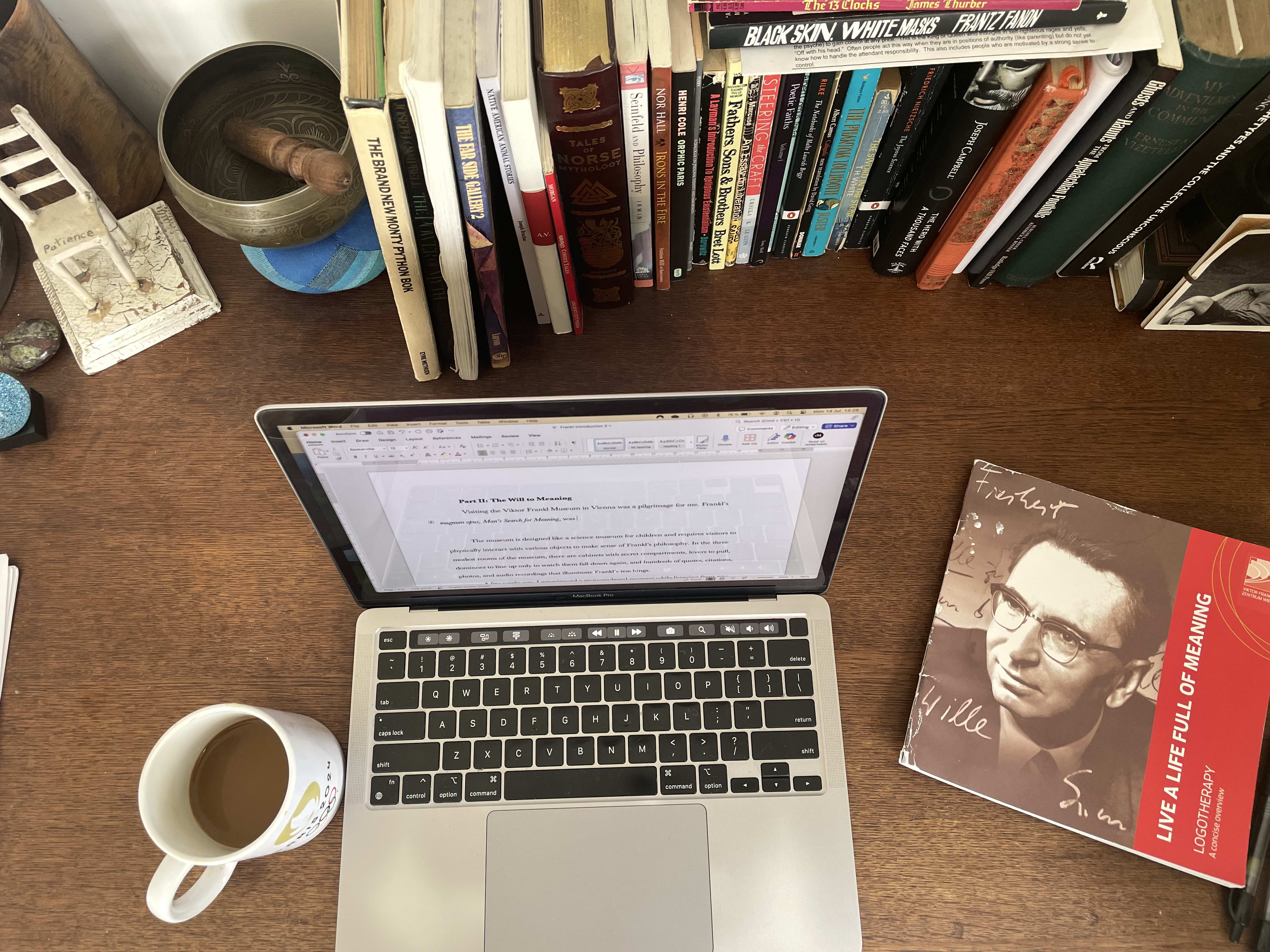 Me at the Museum (2/2)5 a most meaningful space: my writing desk, complete with a gift from the Viktor Frankl Museum