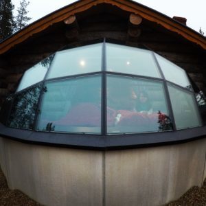 Since this was our honeymoon we splurged and got a cabin with an igloo attached. An oasis in the Arctic. Equipped with our own sauna, fireplace, kitchen, living room, and incline beds inside the igloo sipped hot chocolate and waited for the Northern Lights to show up. We waited and waited some more and then realized the darn clouds were just not going to go away, so we went to eat came back, started a fire and looked up just in time to catch a faint glimpse of some green in the sky. Once we caught a glimpse it became an obsession which I’ll talk more about when I get to Iceland.