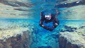 After the Golden Circle, you MUST dive Silfra. Silfra is in Thingvellir National Park and was formed by the divergent tectonic drift of the Eurasian and North American plates. It’s the only place in the world where you can dive between the fissures. At 2 degrees Celcius it’s a bit chilly, but that’s what your dry suit is for! With visibility up to 100 feet, it’s one of the most incredible experiences you’ll ever have.