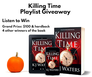 Killing Time Playlist Giveaway -- Win $100!I'm also hosing a Giveaway for $100 plus a hardback of Killing Time, in my Playlist Giveaway. Check out the songs I've pulled together to get you in a 2004 mood, the year the story takes place. Some songs are mentioned in the book, and others are mood songs for the year.