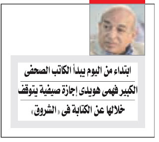 ابتداء من اليوم يبدأ الكاتب الصحفي الكبير فهمي هويدي إجازه صيفيه يتوقف خلالها عن الكتابه في الشروق