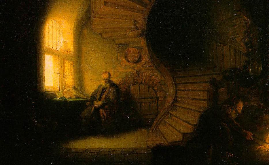 Detail from Philosopher in Contemplation (1632) by Rembrandt.