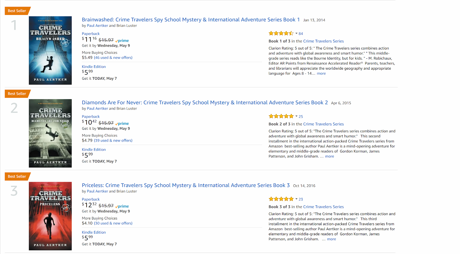Aertker: I think most everything I write is about travel. The Crime Travelers series is about international action adventure—”like the Bourne Identity but for kids.” What’s more, this new book Posthumous is about an American family in Paris, and the mother dies, and the dad and daughter move back to the US. I think of travel as a catalyst for writing, a means of generating ideas mostly because I see reading and writing as a form of travel.Chanticleer: Oh, good answer! Reading is the best form of escapism. Give us five authors whom you would love to meet on your travels – and tell us how they have influenced your work.Aertker: What I’ve done is a little different from most children’s book writers. I love Roald Dahl and Margaret Peterson Haddix and Rick Riordan and Gordon Korman and the rest. However, most of my influence comes from the adult authors who write international and action adventure novels—specifically, James Patterson, Robert Ludlum, Lee Child, John Grisham, etc. I like these guys, and I like their work. In the Crime Travelers series, I bring the action and adventure of adult novels into the kid world.Chanticleer: I think Middle-Grader readers are ready for these books. Look at their video games! Tell us a little about areas of writing you feel most confident in – and what advice you can give someone who is struggling in this area. Aertker: I’ve gotten much better at getting the words on the page. I used to struggle to create a lot of volume of pages. But, I have a trick that has helped me. I think we all struggle with the internal critic telling us that we are not good enough or whatever we’ve done is terrible. We all have this. Sometimes I find that I cannot sleep so instead of tossing and turning, I will get up, put on my glasses, and sit at my desk. I’ll write in the middle of the night for hours. And what I’ve learned is that my internal critic doesn’t get up with me! He’s too tired to criticize. So I write for a while and then go back to sleep. In the morning I wake up and notice that someone has written in my document! Yes, sure it needs work, but editing seems to be easier than cranking out the first draft.Chanticleer: Good advice – If your inner critic is too loud, wait until it passes out, and then write. So, I hear you sell a lot of books… Which business books have helped you the most?Aertker: I think one of the best business books for writers is Tim Ferriss’s 4-Hour Work Week. We all know that we will not work just four hours a week. Writing has no end. We know this. What I took from this book was that it’s important to delegate tasks. You need to hire an excellent cover designer, and you need a good interior designer for your book… You also need a developmental editor, a copy editor, and a proofing editor. Then you need to assemble a team of beta readers. And, and, and. The point being: ask (or hire) others to help.Chanticeer: What do you do in your community to improve/promote literacy?