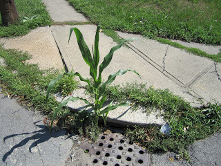 Anyway, a few weeks back driving our local route out of the city (Troy) we noticed corn growing wildly. Brunswick is heavily agricultural, so that was not weird. But we were solidly in Troy, and the corn was not growing in the park, in someones front yard, or even in dirt. No, it was growing out of the sewer drain. So, Troy, known for so many things like South Troy (It's own universe that is ready to fight you), a history of 2 police forces that dueled it out for supremacy, and the creation of disposable collars, now can boast, in addition to it's fantastic Farmers Market, locally produced urban farmed Sewer Corn.