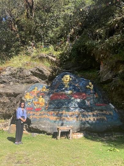 Rock paintings and carvings are common in Bhutan, placed at spiritually powerful sites to bless travellers and sanctify the land. Some of them, including this one, are believed to be “self-risen.” (I had to laugh when I first heard the term; the only thing I associated with “self-risen” was flour!) It means the image is said to have appeared miraculously, without human hands.