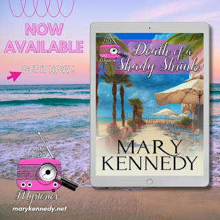 Death of a Shady Shrink is book fivein the Talk Radio Mysteries. Dr. Maggie (the host of the radio show On the Couch with Dr. Maggie) goes to apsychology conference in Palm Beach and unmasks a killer. Her sidekicks, VeraMae and Lola tag along and hunky detective Rafe shows up, too.