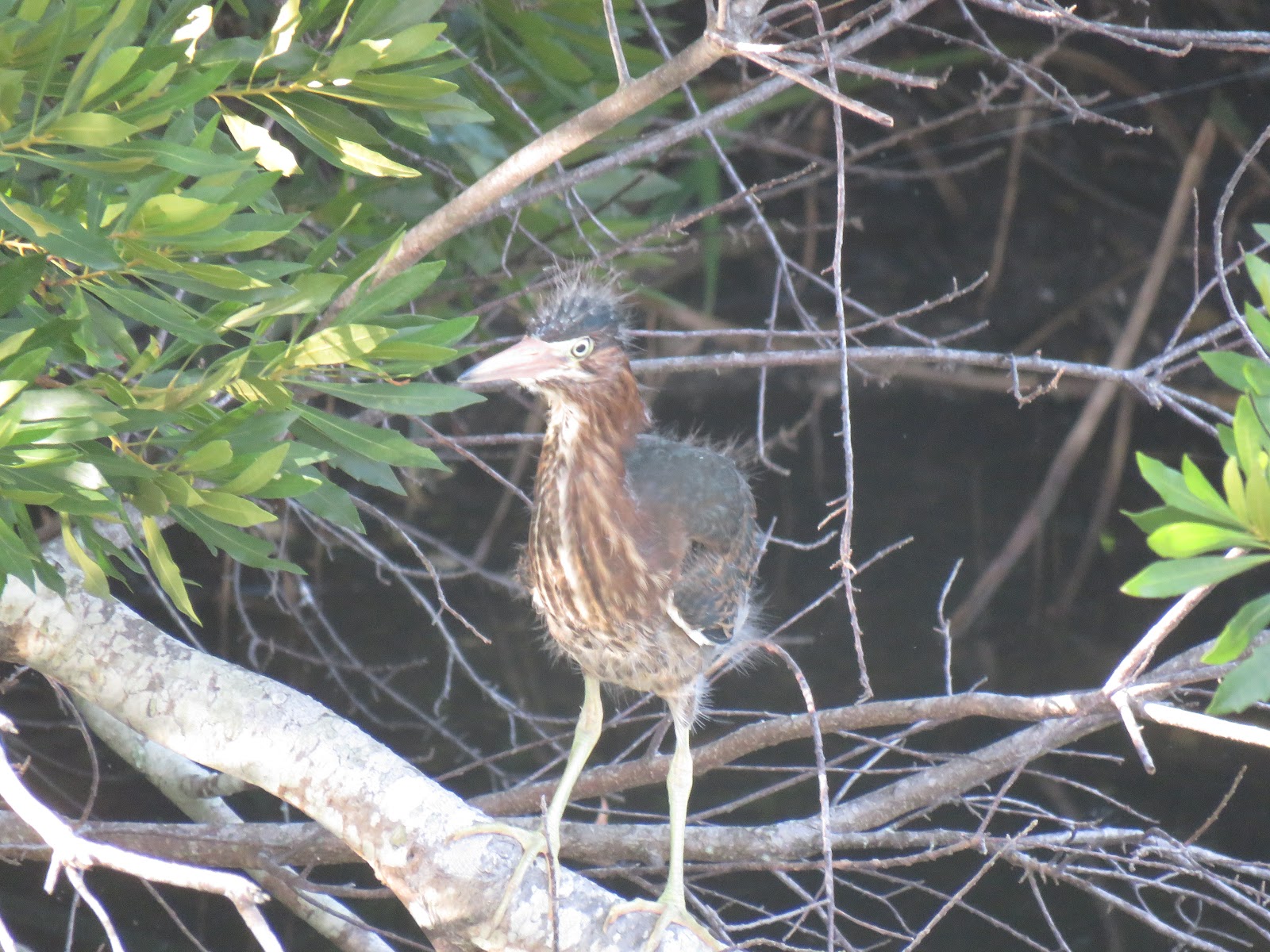 In the meantime, for breaks between frenzies of writing, I'm monitoring the progress of our Green Herons. As I mentioned, we had one brood hatch and disperse, and now we have a second brood.