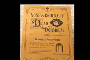 John Clark inviting you to join us on Sunday, October 19th at 1 PM (the Saturday Night show is already sold out.) What are we inviting you to? Nosh & Knock Off 2025, an immersive mystery event. This year’s play is called Dead As A Doormouse.