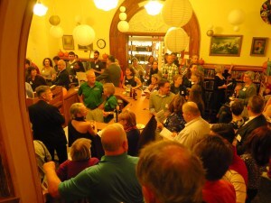 With Jule Selbo and Matt Cost acting as emcees, a packed house heard nine Maine crime writers read five-minute passages from their work. In between the readings there were trivia questions (with fabulous prizes) and plenty of schmoozing in the audience.