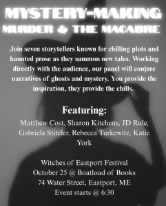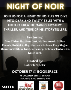 Matt Cost will be joining a motley crew of Maine’s mystery, thriller, and true crime storytellers on October 17th at 7 PM in Bangor. Come check out a Night of Noir at BookSpace at 48 Columbia in Bangor.