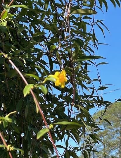 Why would I be excited about a single tiny yellow blossom on our heavy, thick jasmine vine? After all, in the past, the vine has been so abundantly blessed with blooms that it looked like a huge hunk of butter hanging on the pine tree, enough to butter biscuits for the whole town.
