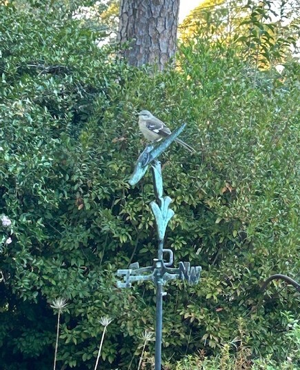 Pine straw has gathered thickly on the carport roof reminding us of British thatched roofs. In the yard, the straw is so thick in places that the grass hardly shows. Kaison blew off the driveway only three days ago and already it’s strewn with a carpet of red-brown.