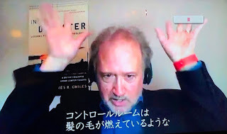 NHK, the Japanese equivalent of PBS, interviewed me on Zoom last year for their series "The Error," so I didn't get to travel any further than a table in my office. I don't have a wall-sized bookshelf of weighty volumes for the Expert's Background, so I settled for a wall and a poster.