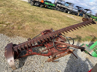 As a kid visiting my grandparents' farm I foolishly wanted to see what the blades of the PTO-driven sickle bar mower felt like, and that sent me to the doctor to put back part of my fingertip. Here's what a rear-mounted sickle bar looks like: wicked!