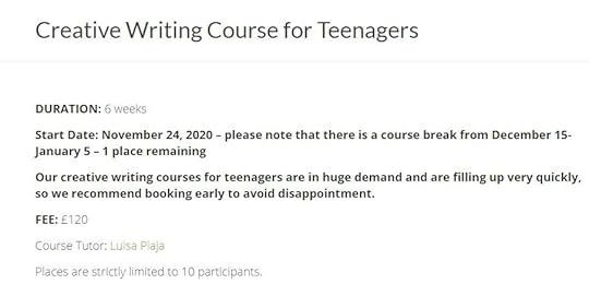 I’m running a creative writing course for teenagers, starting soon! Check out Creative Writers Ink for details.