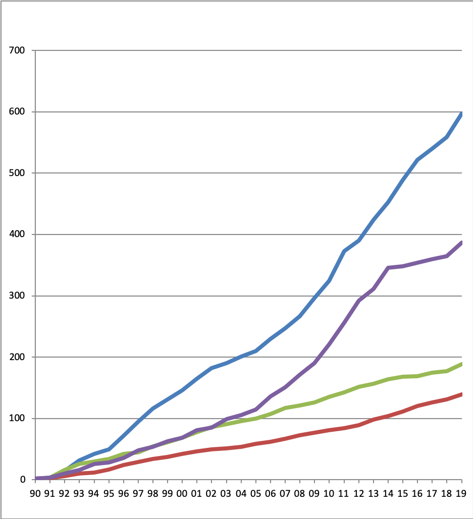 The RED line shows the number of unique stories sold by year (I haven't included sales of reprints, audio productions, or donated stories.) The cumulative number of unique sales is now 140 ( one in 2020). I seem to sell 23.3% of my drafts, which is almost a third of submissions. On the other hand this indicates that I sell about 73% of everything I manage to complete (and submit.)