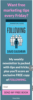 Here, Gaughran is offering a free copy of his e-book Following in exchange for your email address.