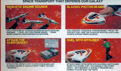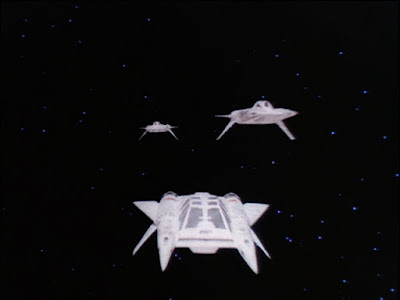 Special effects from Buck's sister series, Battlestar Galactica, were mercilessly plugged into the proceedings too. In "Planet of the Slave Girls," the Cylon base from "Lost Planet of the Gods" substituted for Vistula's launch bay. In "Vegas in Space," "Cosmic Wiz Kid," and many others, the Galactica planet Carillon, seen in "Saga of a Star World," was substituted for the planet of the week. This was achieved in so sloppy a fashion that the Cylon-mined Nova of Madagon, a red star field, was even visible for a few seconds. BG spacecrafts were also brought out of mothballs. The Galactica shuttle doubled as Buck's shuttle in the second season, and ships from Galactica's rag tag fleet showed up in "Planet of the Amazon Women" and "Space Vampire" among others.