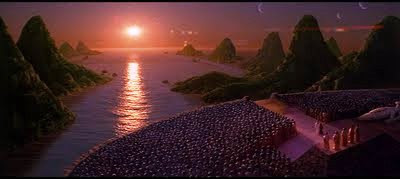 I should add, the special effects visualizations of New Chicago and Anarchia are nothing less-than-spectacular, even today. Again, it’s difficult to reckon with just how cheaply this movie was made because it features extensive, highly-detailed matte paintings, numerous space dogfights, and huge sets (like Ardala’s throne room…replete with Olympic-size swimming pool).