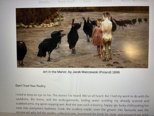 The wonderful journal Gone Lawn has published two of my micros: “Nature’s Ways” and “The New Girl.” The first one is fanciful. The second is kind of heart-breaking. It’s in honor of all the new girls who didn’t come into a school with the best clothes or nurturing.
