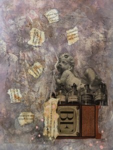 These collages were inspired by Sylvia Plath poems. The first, “Feverish,” is based on the poem “Fever 103.” https://www.poetryfoundation.org/poetrymagazine/poems/29479/fever-103