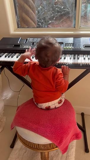 I hope my American friends had a wonderful Thanksgiving. Mine was wonderful as my kids took on most of the work, and I got to spend a lot of time with my “best friend,” my little grandson. The gardener and I watched him the day before and the day after the holiday, as well as spending time on Thanksgiving Day itself. The day before we took him to the clock shop because he is passionate about clocks. And he sat down to explore our keyboard.