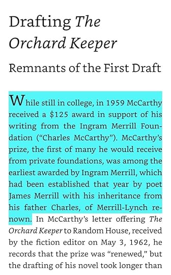 It’s astounding the number of reviews McCarthy’s early books got, especially in our age of declining local newspapers and book sections. He’s getting reviewed in the Tampa Tribune, the Charlotte Observer, the Anniston (Alabama) Star.