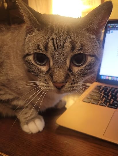 If you saw my post this weekend, you’ll know I’m posting 30 Days of Gratitude here this year, and I invite all of you to post things you’re grateful for in the comments as well. I have several things to be grateful for today, including a mostly clean bill of health from my doctor this afternoon (except for my cholesterol, which is suddenly not ideal and will necessitate doubling down on fruits and veggies and exercise until we check it again in a few months), and also my lovely cat Salaadin. (He is up here on my desk trying to get me to pet him as I type up this post. I will oblige because I love him so. You can’t see how blue his eyes are in this photo because of the warm backlight from my desk lamp, but he’s quite the beauty.)