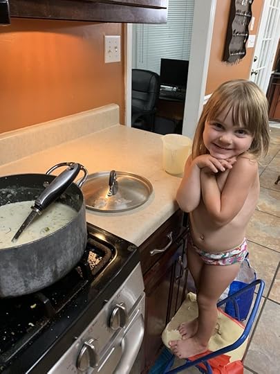 I had a stirring helper. My eldest son also shelled and deveined the shrimp for me.