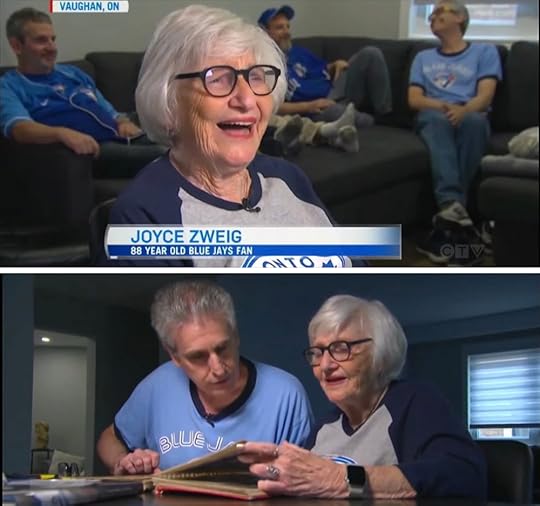 My mother is the reason our family became Blue Jays crazy. (Many of you will have seen her TV appearances over the years, including one on the CBC last week. There might be another on CTV this evening!) My father was a sports fan, but my mother was a baseball fan! She always says it was the only game she really understood as a girl. She used to attend the minor-league Toronto Maple Leafs baseball games in the 1950s and root for the Brooklyn Dodgers against the New York Yankees watching the World Series on television.