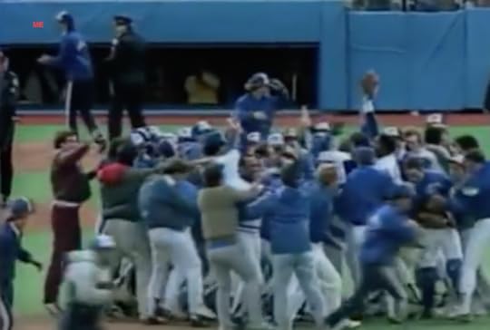 That’s me on the field (identified by the red ME) when the Blue Jays clinched the American League East for the first time in 1985.